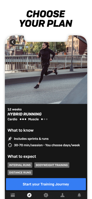 • Choose from a library of Training Journeys, focusing on bodyweight, weights, running, HIIT workouts or a combination of training methods