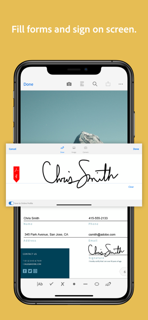 • Use your finger or Apple Pencil to e-sign any PDF document.