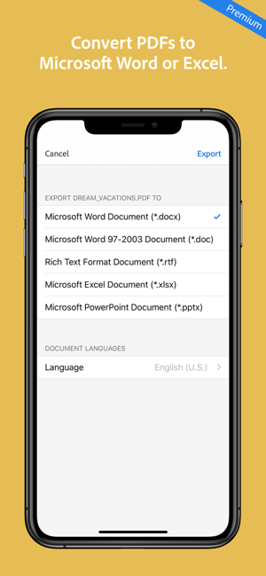 • Export PDFs to Microsoft Word, Excel, or PowerPoint.