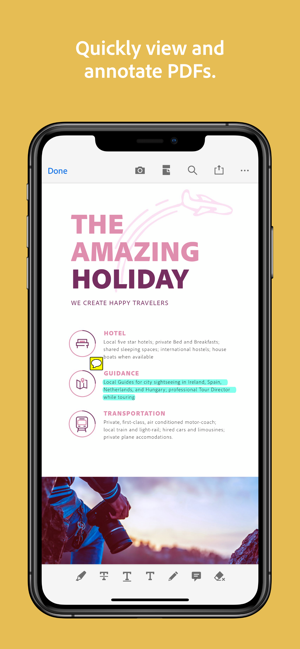 • Highlight and mark up text with annotation tools.