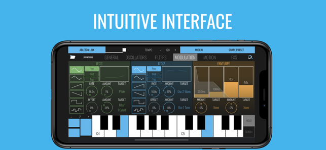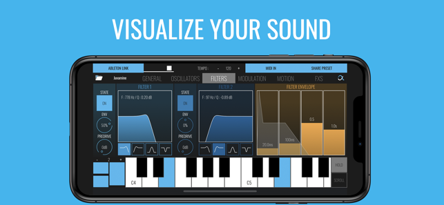 VISUALISE YOUR SOUND : thanks to its user-friendly visual filters, sliders, LFOs and envelopes, quickly understand how to design your own presets.