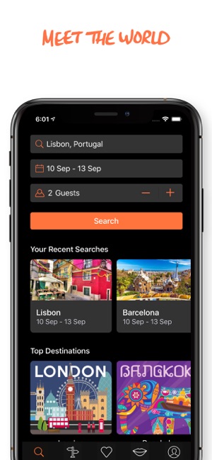 • Get inspired by our ‘Top destination’ feature and discover top hostels in London, Amsterdam, Barcelona, Bangkok and more