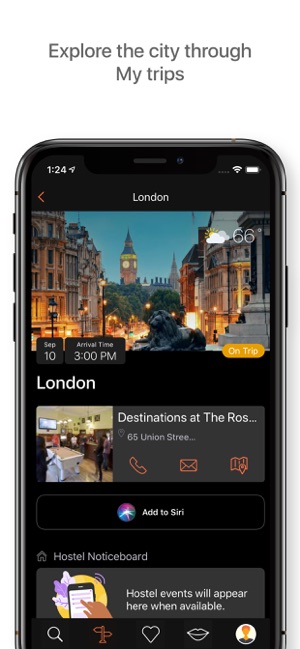 • Discover hostel events and local tours using the ‘Noticeboard’ feature