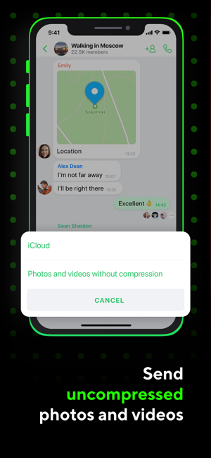 If you want to show someone beautiful high-quality photos and videos, send them without compression. And if quality is not important, the file will be sent in a couple of seconds.