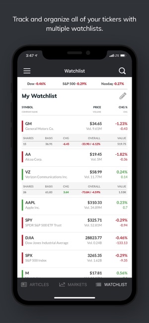 * Sync your Watchlist. The MarketWatch app syncs with MarketWatch.com, allowing registered MarketWatch users to track stocks on the go. You can add multiple personalized watchlists, which can be viewed at any time across devices and platforms