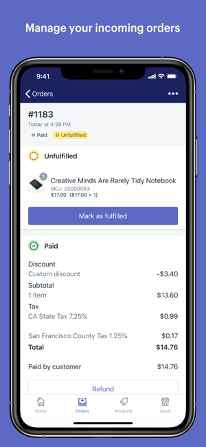 Run your business wherever you are. Whether you have one or multiple Shopify stores, this app makes it easy for you to manage your orders and products, connect with staff, and track sales.