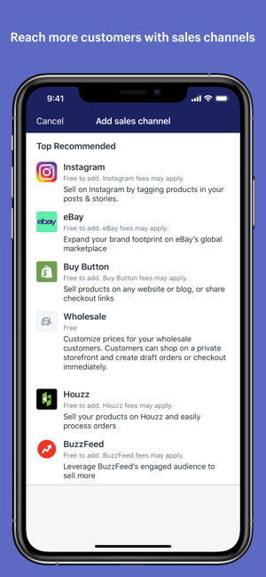 • Access your Shopify apps from orders, products, and customers, or right from the Store tab