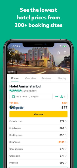 • Get great deals on hotels across lowest prices from more than 200 booking sites worldwide