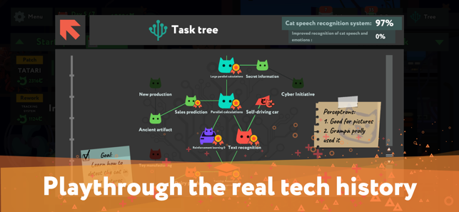 In this game, you play as a coder who accidentally found out that their cat is extremely good at coding, but not as good at speaking human language. Now this coder (it’s you!) must learn all there is to know about machine learning and use visual programming to build a cat-to-human speech recognition system.