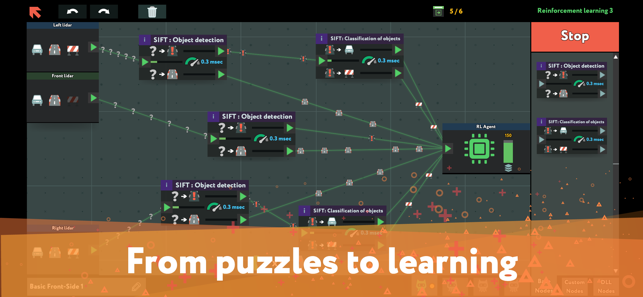 The game is loosely based on real-life machine learning technologies: from goofy Expert Systems to mighty Recurrent Neural Networks, capable of predicting the future. Don’t worry: it all plays out as a puzzle game. No coding experience required!