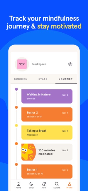- Track your progress and time spent meditating