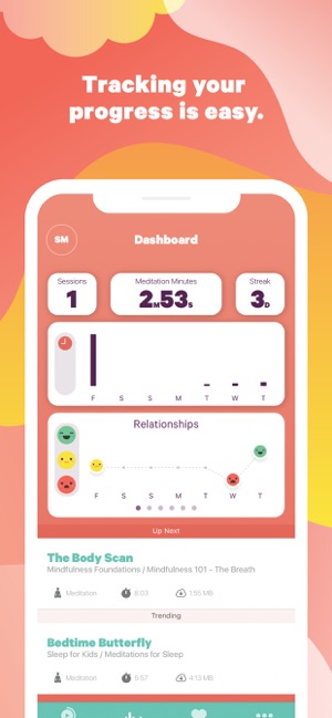 When opening the app for the first time I was pleasantly surprised with the layout and colours, as it was visually appealing to the eye and I found it easy to use. With an age range from 7- Adult there are different activities and meditations available for everyone to do at different stages of there lives. The app has refreshed my mindfulness, I used the sleep: starry night which helped me have a good sleep and I was left feeling rejuvenated. Smiling mind is a great app as it's mediations start from 1 minute and there are meditations for everyone to do even if only for a minute. I found the shorter ones quick and helpful in checking my breathing. Not only does it have meditation but also activities which allow you to use things such as food, which is a great way to enhance mindfulness overall. I highly recommend smiling mind to anyone, as it has a range of meditation activities suited to everyone definitely give it a go.