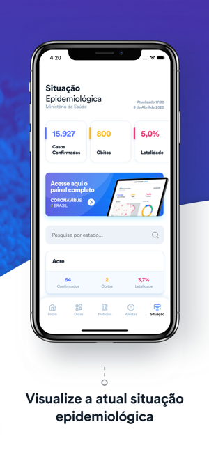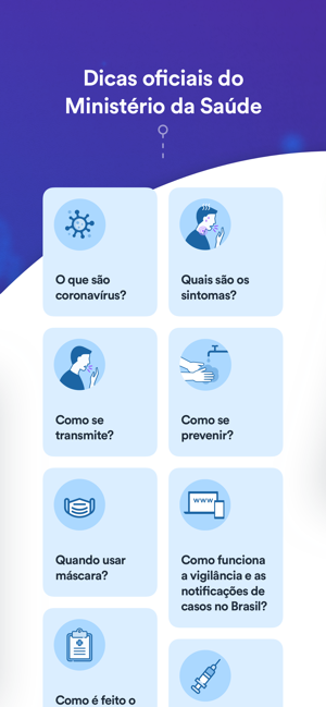 O Ministério da Saúde lança o app Coronavírus-SUS com o objetivo de conscientizar a população sobre o Corona Vírus COVID-19, para isso o aplicativo conta com as seguintes funcionalidades: