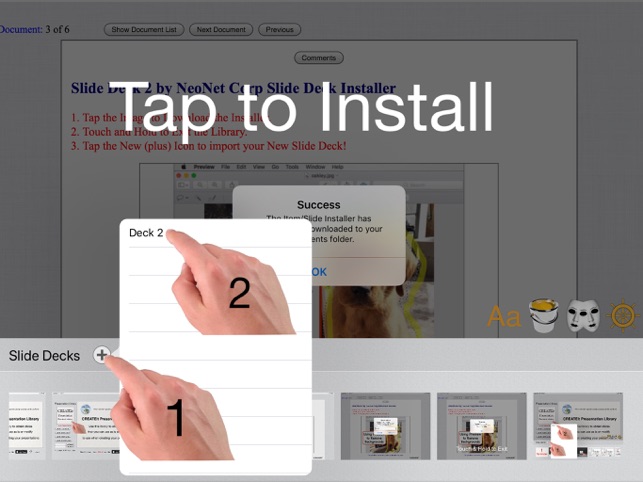 CREATEit provides the means to view, create, store, share and acquire content. This includes video, image, audio, PDF, maps, slides, and items. Groups of Items and Slide Decks can be exported and uploaded to a Content Library where they can be imported by any other CREATEit app client that has access to the library.