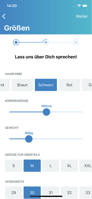 Teile uns Deine Stilvorlieben sowie Größen mit und lege Dein Budget für die neuen Kleidungsstücke fest.