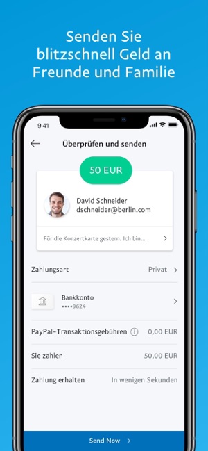 Ob Sie nun Freunden Geld für einen Wochenendausflug oder das gestrige Abendessen zurückzahlen – mit unserer verbesserten mobilen App können Sie Freunden und Familie ganz einfach Geld senden und es von ihnen anfordern. Außerdem können Sie damit Ihre Aktivitäten anzeigen, Geld in 25 Währungen in mehr als 200 Märkte senden und vieles mehr.