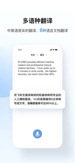 讯飞听见App是一款语音转文字及多语种翻译的手机应用,软件支持录音转写和音频导入转写,中英文语音转文字识别率最高达95%+,1小时音频最快5分钟出稿!同时,支持多语种在线实时翻译、文档上传翻译。手机端一站式完成录音、转写、翻译、编辑、导出,高效工作从此开启。