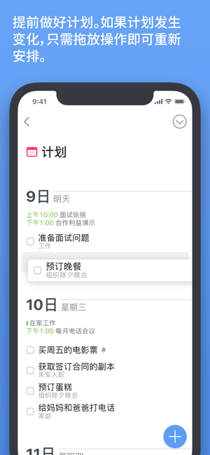 有效管理您的时间 – 同时查看您的待办事项和日历事件,并相应地对每周进行计划。创建重复的待办事项以确保始终如一。