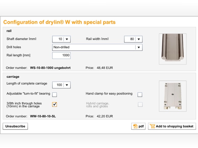 Mit dem drylin® W Konfigurator mit Sonderartikeln können Sie schnell und einfach geeignete drylin® W Linearführungen mit Sonderartikeln speziell für Ihre Anwendung konfigurieren.