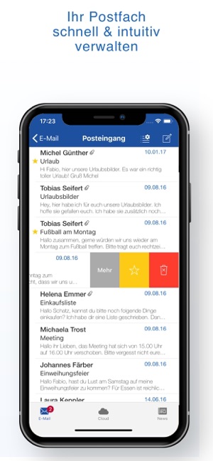 - Beste Darstellung des Postfachs auf dem Smartphone