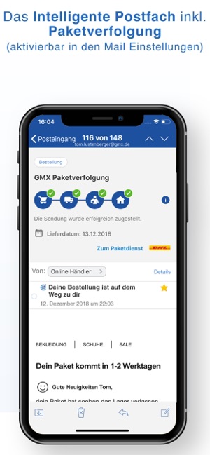 Sie haben einen GMX E-Mail-Account? Dann ist diese Mail App genau für Sie gemacht: Mit der GMX Mail App nutzen Sie Ihr GMX Postfach jetzt auch problemlos auf Ihrem iPhone und iPad – mobil, auf Reisen, wann und wo Sie möchten. Die kostenlose GMX Mail App ist Ihr treuer Begleiter unterwegs!