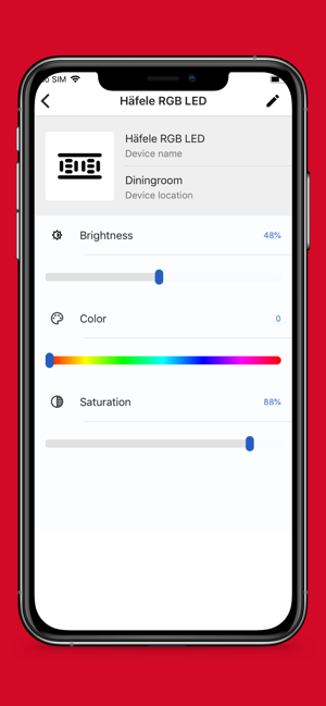 - Ein-/Ausschalten und Dimmen von RGB-Leuchten, Einstellen der Lichtfarbe.