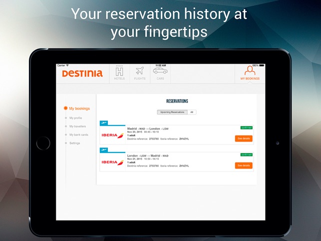 When you register, you’ll have access to a control panel for managing your upcoming reservations: to check on their status, contact the personal agent assigned to you, and view the documents (tickets and vouchers) for all of the reservations you’ve made with us (not just the hotels and flights).