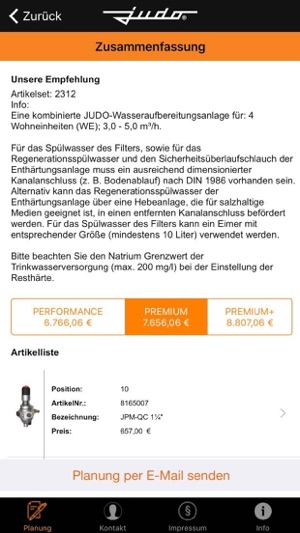 Noch beim Kunden kann ich mein Angebot an ihn versenden. Was mir hier noch fehlt ist die Möglichkeit Artikel auszutauschen oder Alternativen einzusetzen. Aber die App ist ja noch jung und das kommt bestimmt noch!! Ganz großes Lob an Judo!