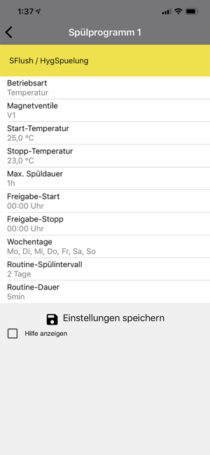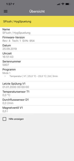 Mit der KEMPER HS2-App kann die vollständige Parametrierung der KHS-HS2 Hygienespülung vorgenommen werden. Sie ermöglicht das Anzeigen der Einstellwerte sowie das Auslesen von Spülprotokollen. Firmware-Updates der KHS-HS2 lassen sich einfach über die App übertragen.