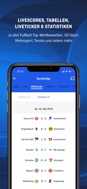 Und mit den Live Tickern zur Fussball Bundesliga, 2. Liga, 3. Liga, DFB-Pokal, Champions League, Europa League, Premier League und Primera Division bleibst du jederzeit auf Ballhöhe!