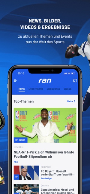 Egal ob NFL (American Football), Fußball, DTM, Rugby, Fighting oder eSports - mit der ran App bist Du bei Top Sport-Events live dabei! Keine andere App bietet Dir so viele kostenlose Livestreams zu NFL, U21, DTM, Rugby, Fighting und eSports.