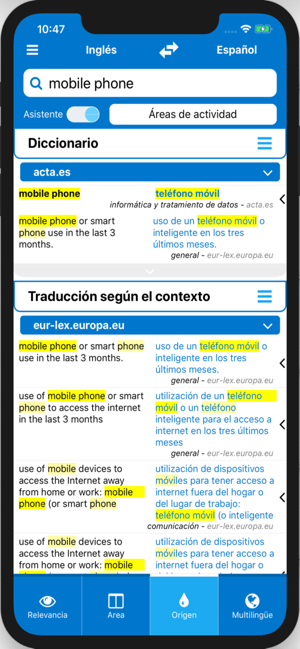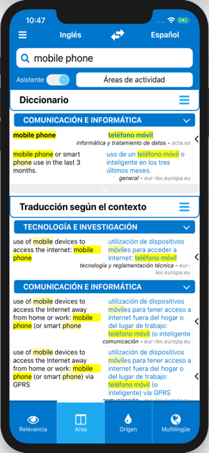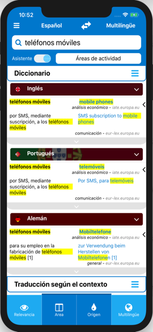 TechDico le brinda acceso a los recursos de traducción más valiosos disponibles: IATE (terminología europea), Eur-Lex-Europa.eu (textos de legislación europea), WIPO (patentes internacionales), CJKI (glosarios de idiomas asiáticos) y diccionarios multilingües especializados.