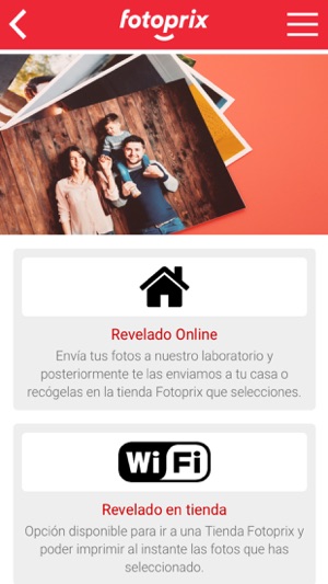 Encuentra tu Tienda Fotoprix más cercana en función de tu localización desde el apartado Buscador de Tiendas de la aplicación.