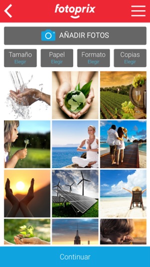 Estés donde estés, puedes crear un pedido con copias de diferentes tamaños, el convencional 11x15 cm., tamaños cuadrados 11x11 cm. para fotos que tengas de Instagram y medidas superiores 15x20 cm, 20x30 cm., siempre en papel fotográfico Fujifilm brillo o mate. Además si has creado una foto panorámica con tu móvil, con la App Fotoprix puedes solicitar su impresión seleccionando formato digital.