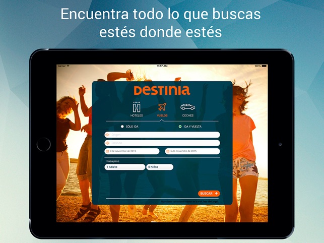 Destinia pone a tu alcance una selección de más de 500 aerolíneas y 300.000 hoteles en todo el mundo.