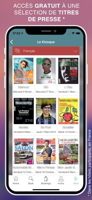 • Consultez gratuitement les plus grands titres de presse, dans l’espace « Le Kiosque » des hôtels participants.