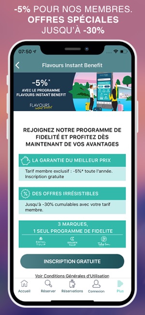 • Bénéficiez d’une réduction exclusive de 5% sur l’ensemble de vos réservations, grâce au tarif membre Flavours Instant Benefit dans les établissements Golden Tulip, Tulip Inn et Royal Tulip