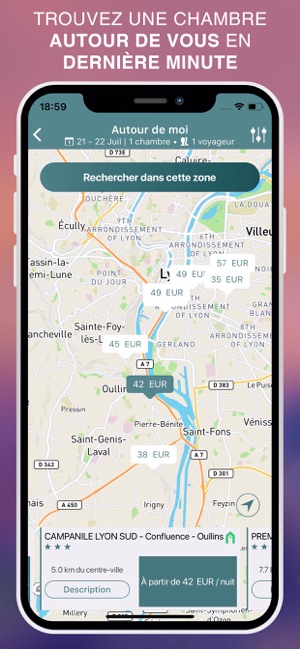 • Visualisez l’ensemble des hôtels disponibles sur l’application en temps réel, sur une carte interactive, au meilleur prix