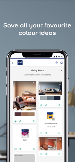 • SHARE personalised designs and room ideas with friends and family and receive instant colour feedback
