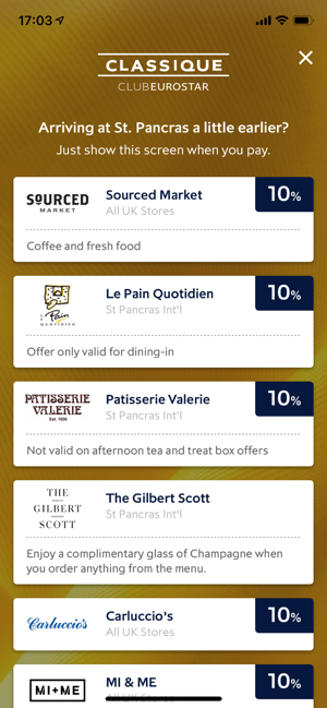 Club Eurostar members can now access even more offers to use in St Pancras International when using their digital loyalty card.