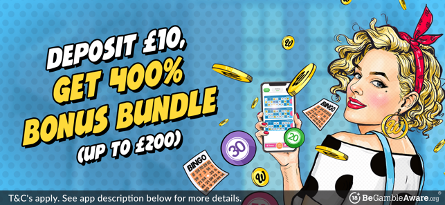 Get a 400% bonus bundle up to £200 with your 1st deposit on the wink bingo app. A 200% Bingo bonus & a 200% Games bonus! (T&C’s apply).