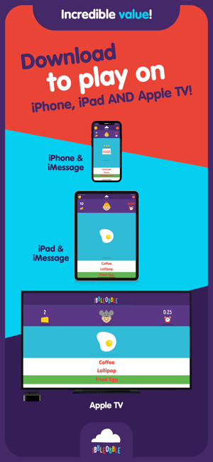 • Universal purchase (Get 'Words with Ibbleobble' for your Apple TV and for ALL your iOS devices with one purchase!)