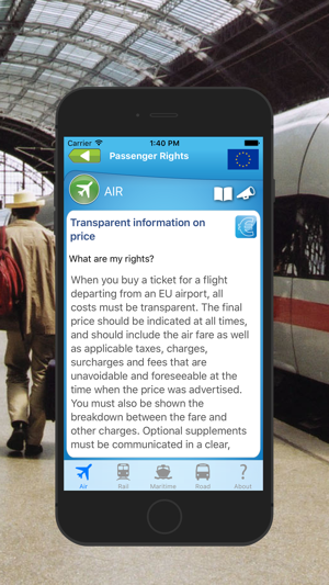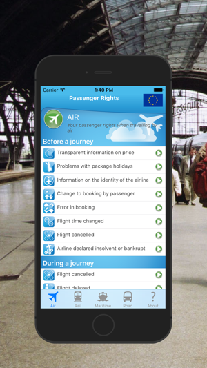 Passenger rights gives clear and concise information on travel rights in the European Union. The question/answer format makes it easy for you to identify the problem you're having and get a clear explanation of your rights concerning that problem, and the options available to you.