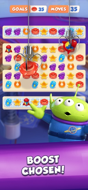 • Call the toys to your aid through themed boosts like The Claw to swap to game pieces, the Alien’s Saucers to zap away obstacles, and Etch A Sketch to shake up the board