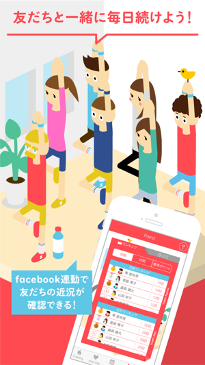 facebookと連動することで友だちとトレーニング状況を競い合ったり、共有をしたりすることが出来ます。