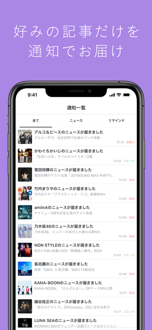 今までのナタリーではtwitterでの通知などで情報を得ていましたが、このアプリを利用するれば、自分が好きなアーティストをフォローしておくと通知が来るように設定を自分で出来るのでとても便利です。