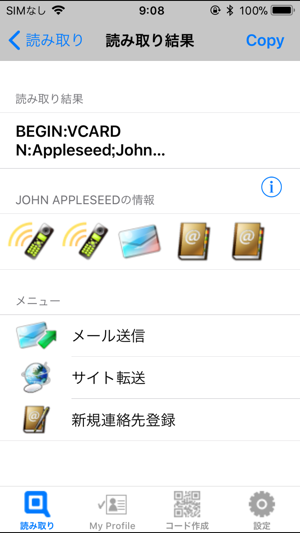 読み取り結果は様々な用途へ転送ができます。読み取り結果から名前、住所などを判断し、アドレス帳への登録ができます。読み取り結果をメモ帳、メールへのコピー&ペーストも可能です。