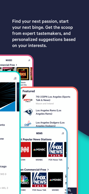 スポーツ中継、独占音楽チャンネル、最新ニュース、570万以上のポッドキャスト、そして世界中で10万以上のラジオ局。素晴らしいコンテンツは尽きません。