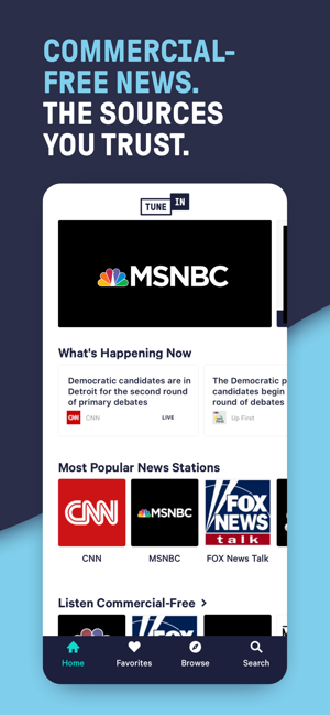 NHKラジオ(ポッドキャスト)のようなトップ局を含む、地方、国内および世界の情報源からの24時間のニュース実況を体験してください。 また、TuneIn Premiumを利用すれば、広告なしでFox Newsを聴くことができます。