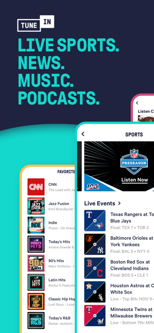 TuneInは、世界中のスポーツ実況、音楽、ニュース、ポッドキャストとラジオを1つのアプリにまとめたものです。